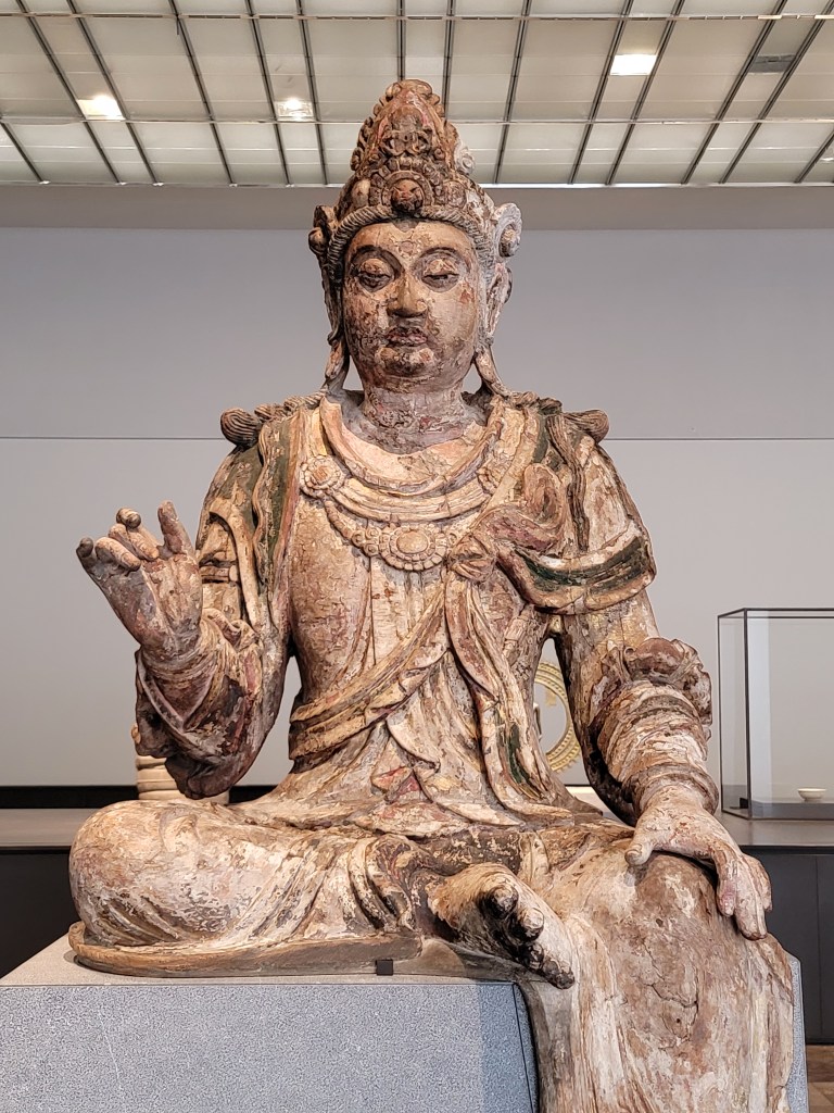 Quán Thế Âm là một trong những vị Bồ tát được yêu thích nhất trong Phật giáo. Nguyên thủy, Quán Thế Âm là một người nam – như tượng gỗ này (tạc thời Tống). Đến thời nhà Nguyên (bắt đầu từ năm 1271), hình tượng của Quán Thế Âm dần dần trở thành một người nữ. Ở Việt Nam, hầu như chúng ta chỉ quen thuộc với hình ảnh này.
